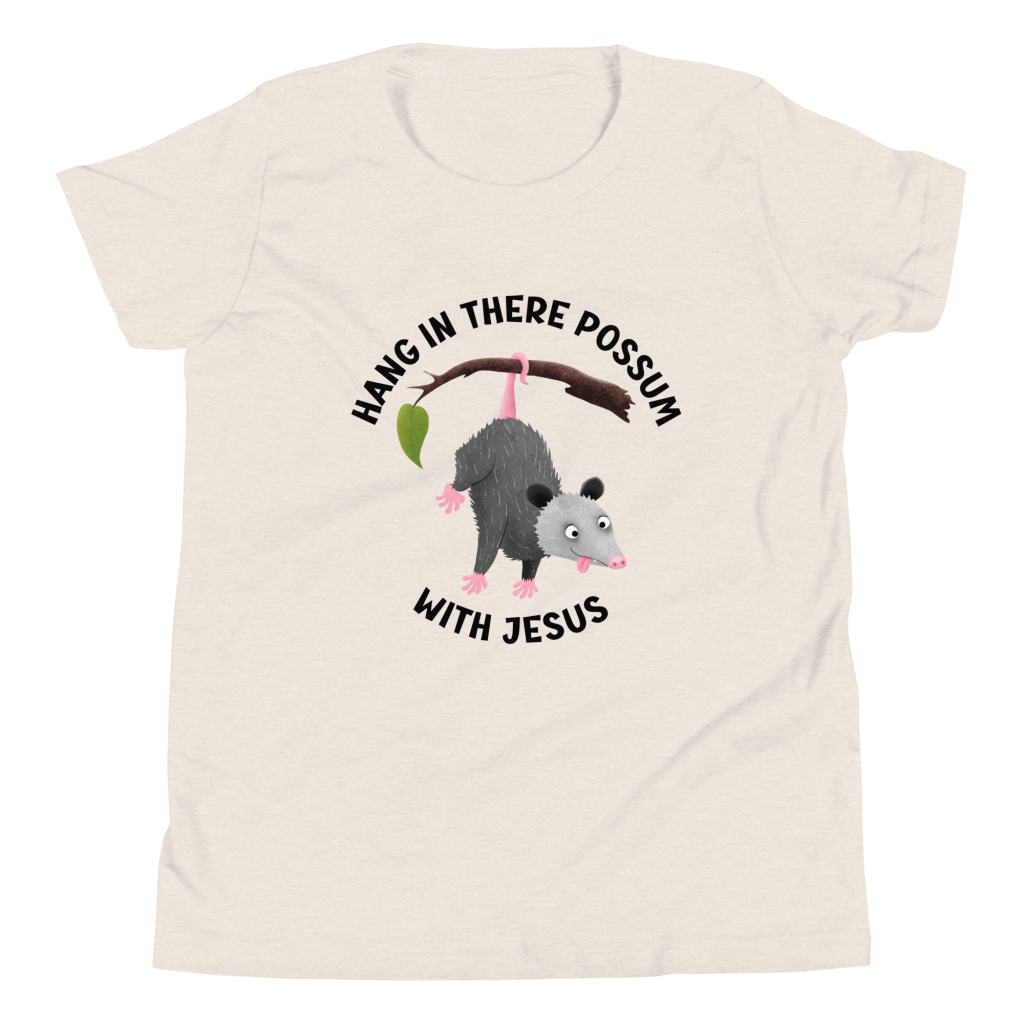https://thespeedingpullet.com/product/hang-in-there-with-jesus-cute-cartoon-possum-christian-youth-short-sleeve-t-shirt/