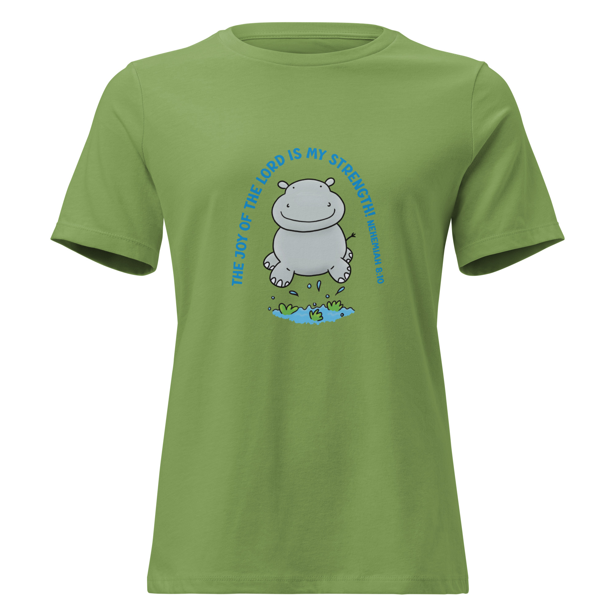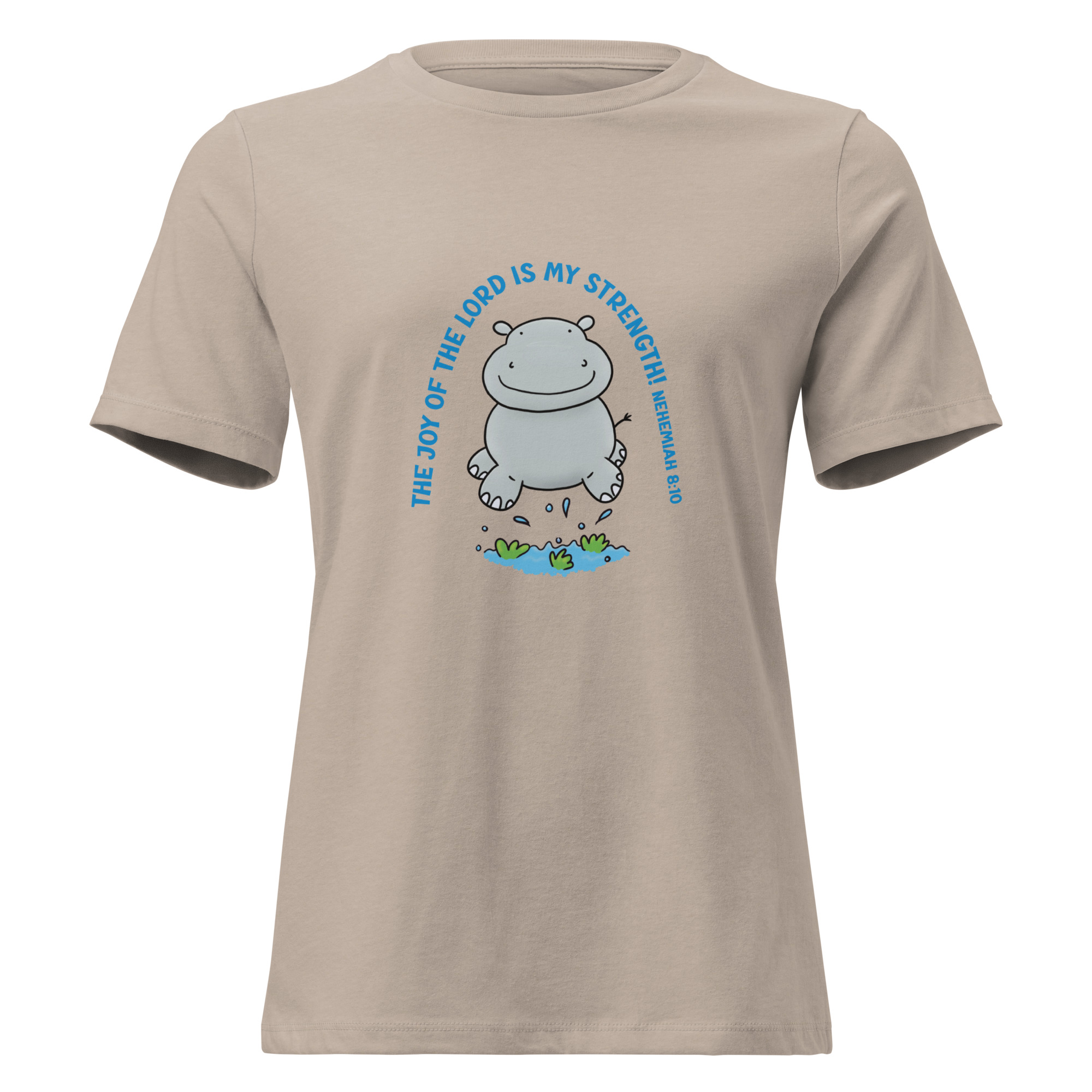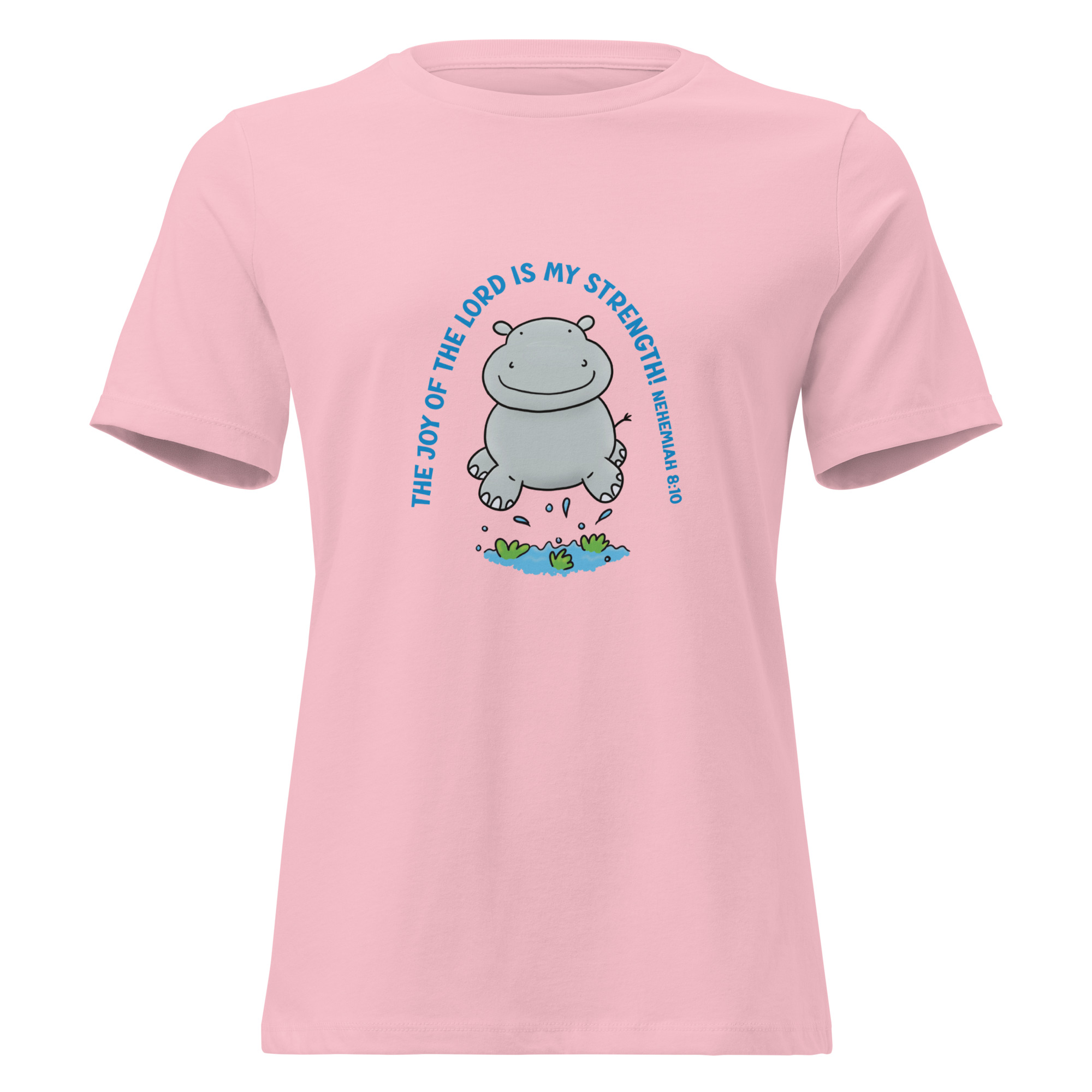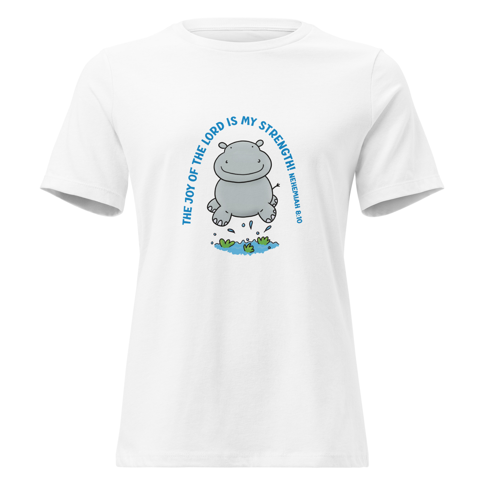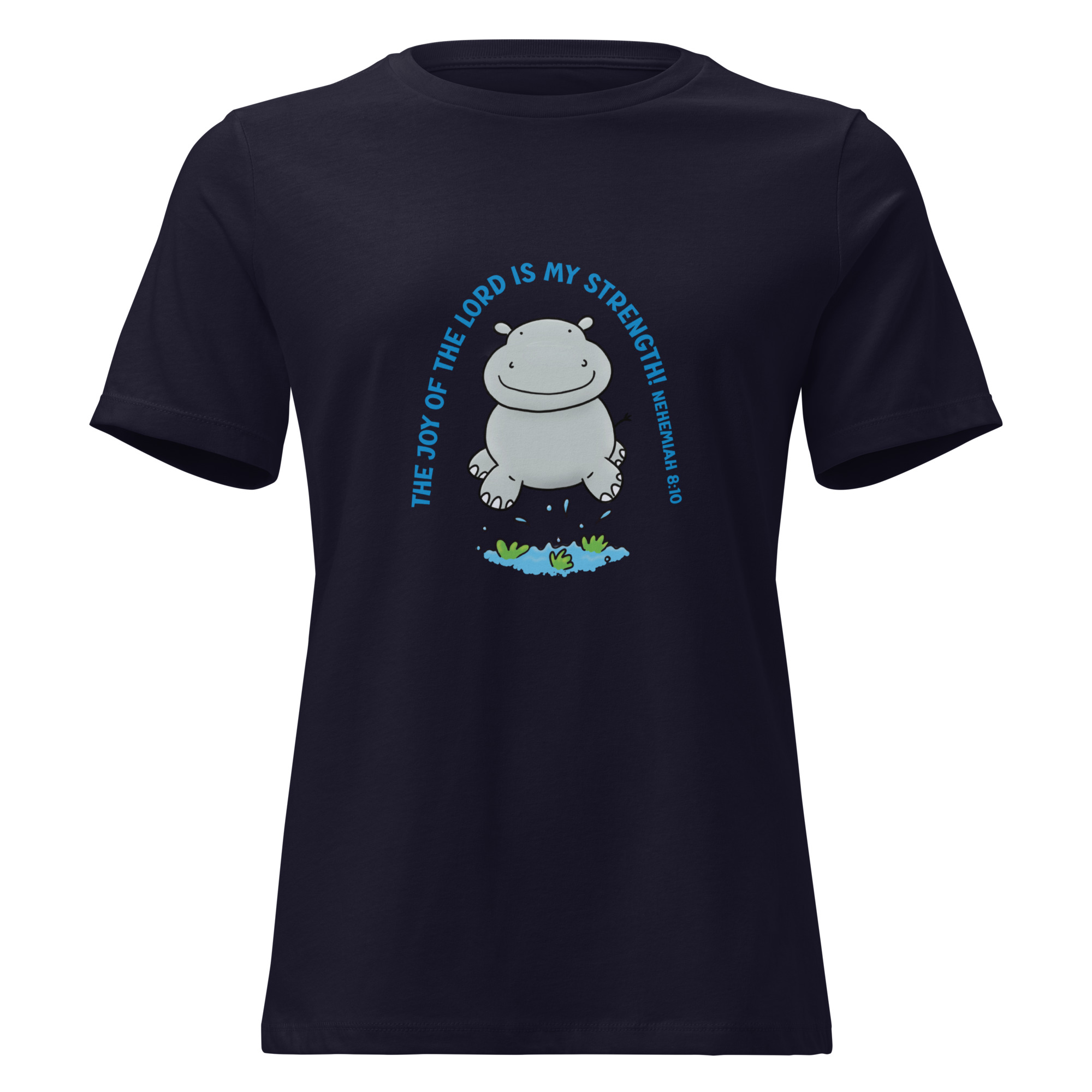 Cute jumping hippo joy of the Lord scripture bible verse Women’s Relaxed T-Shirt