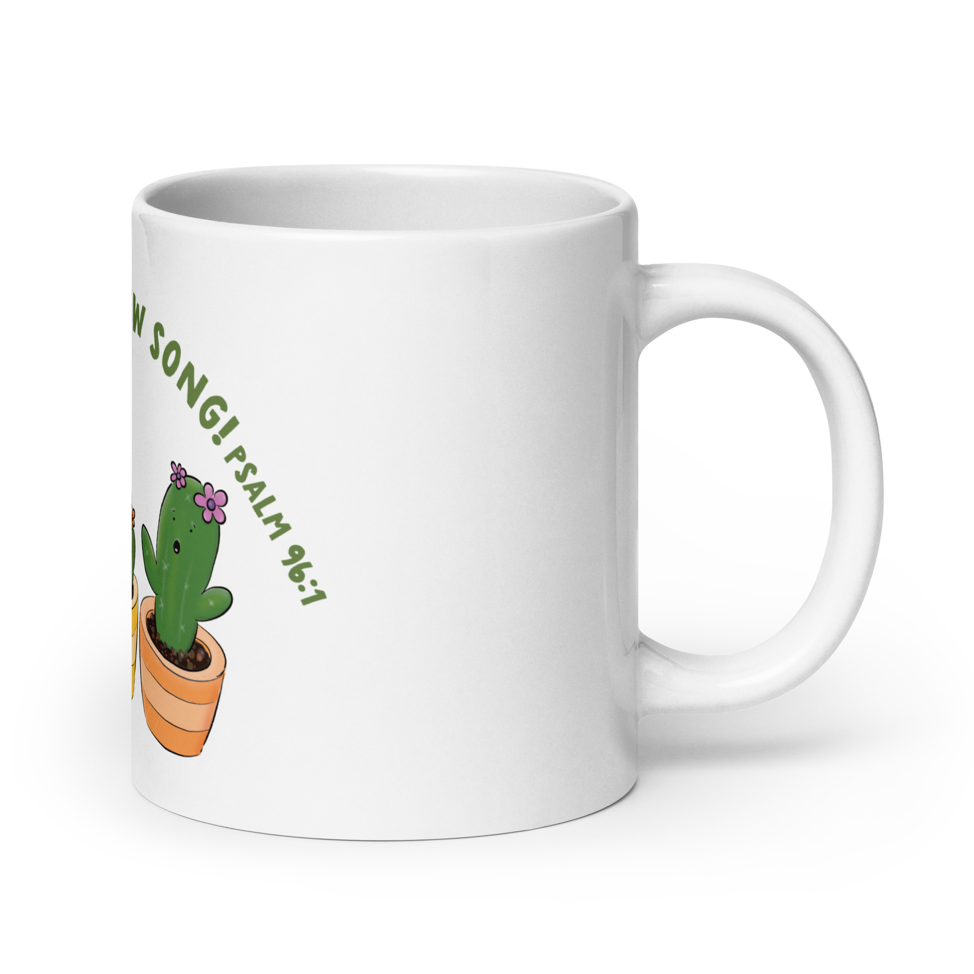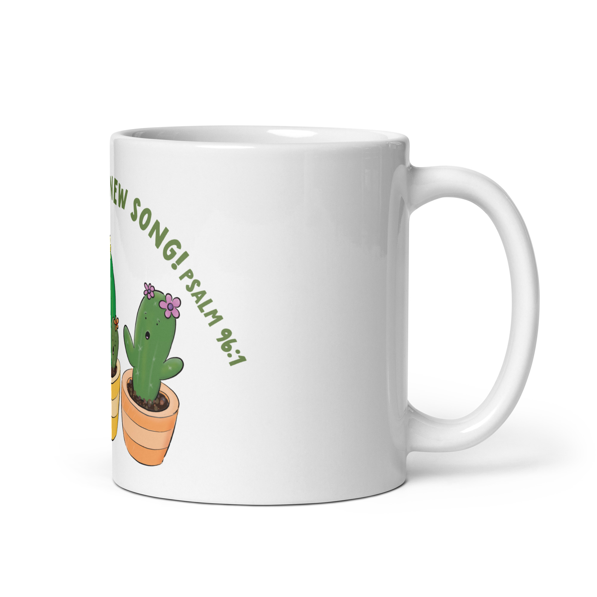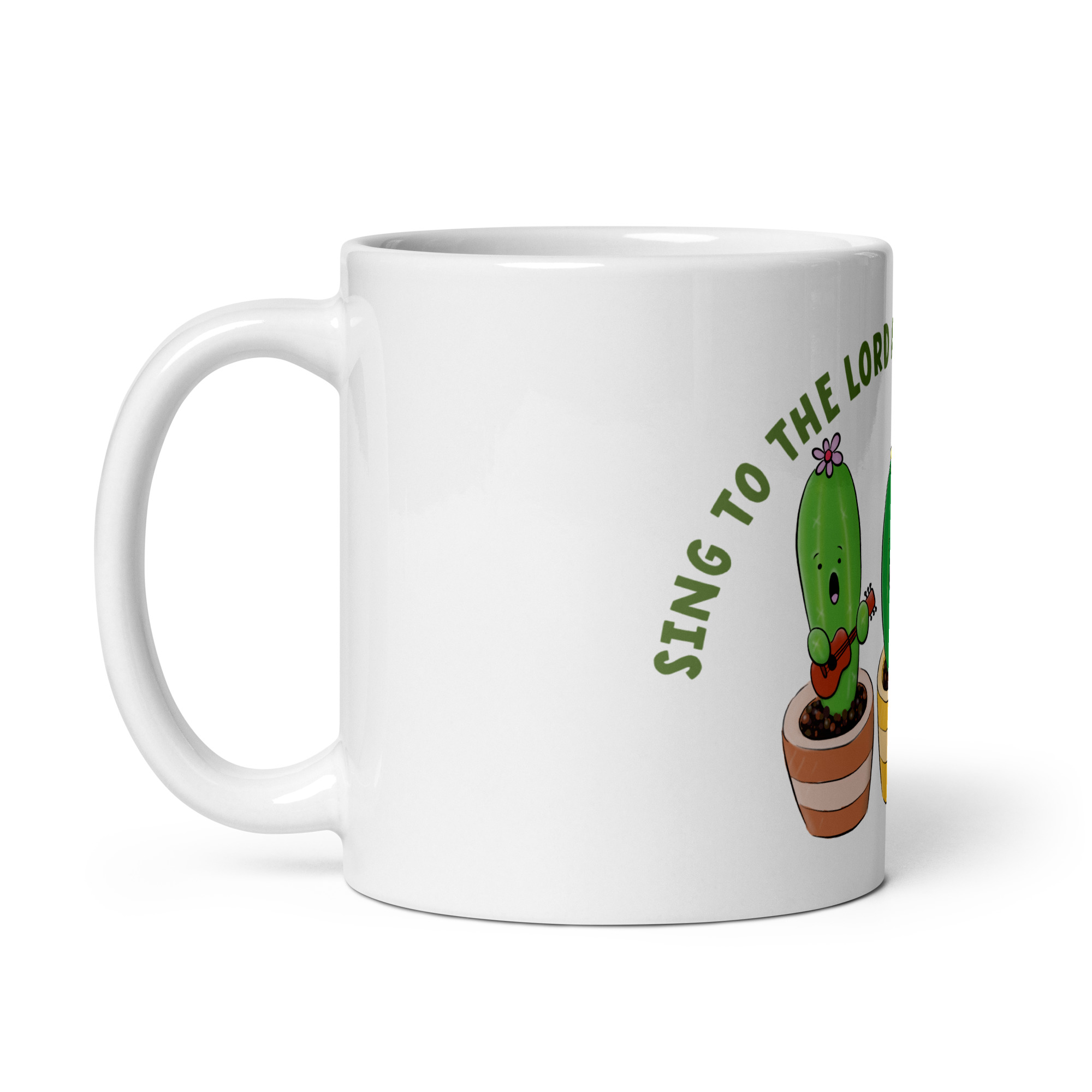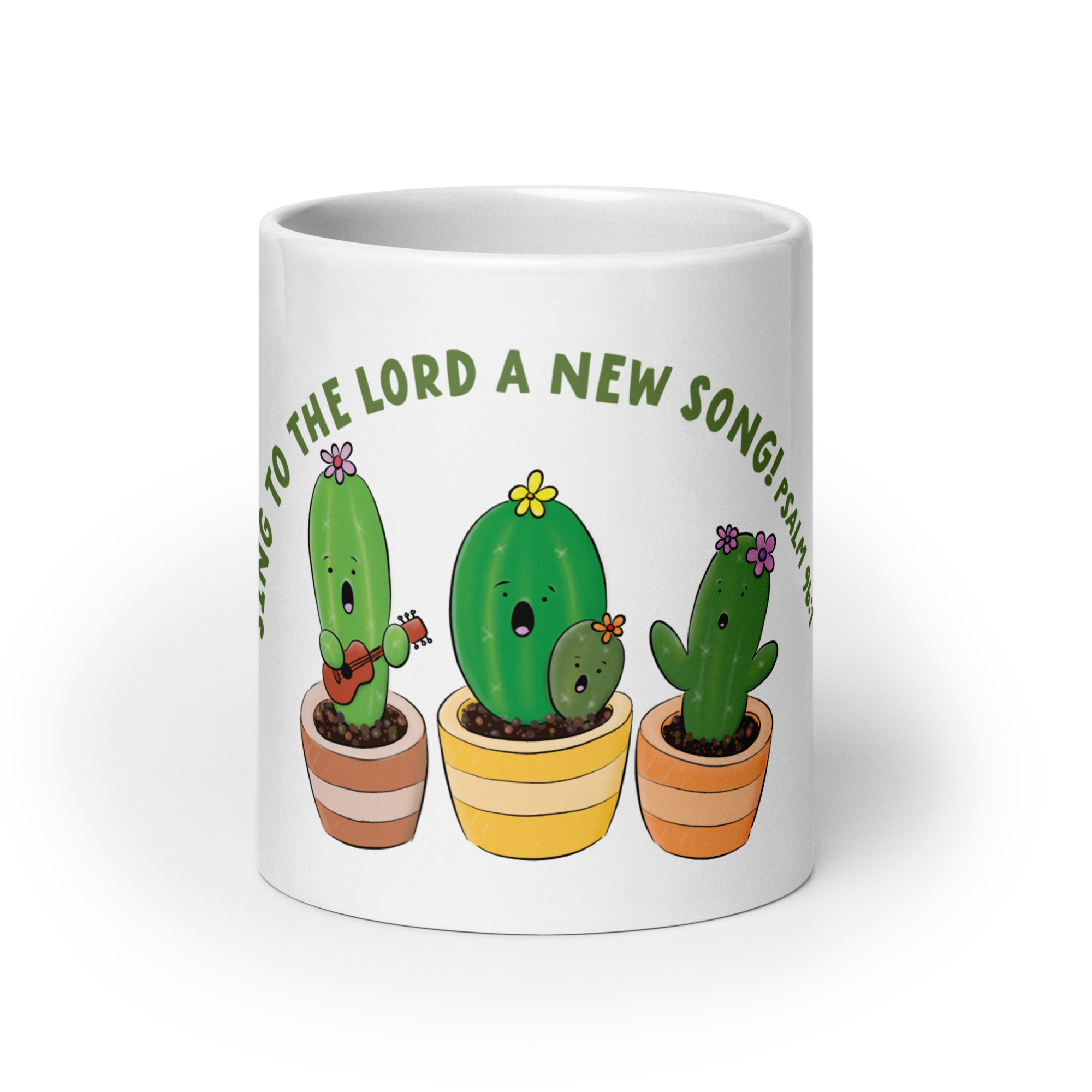 Cute singing cactus cartoon bible verse White glossy mug