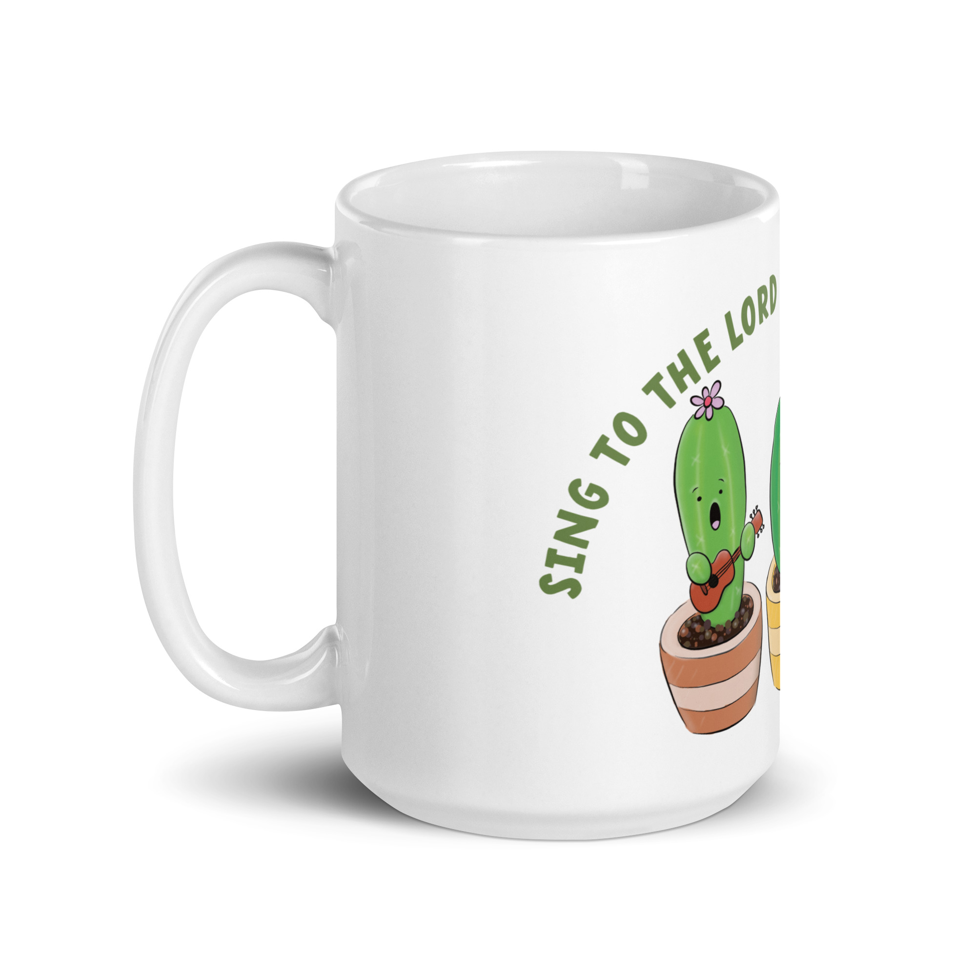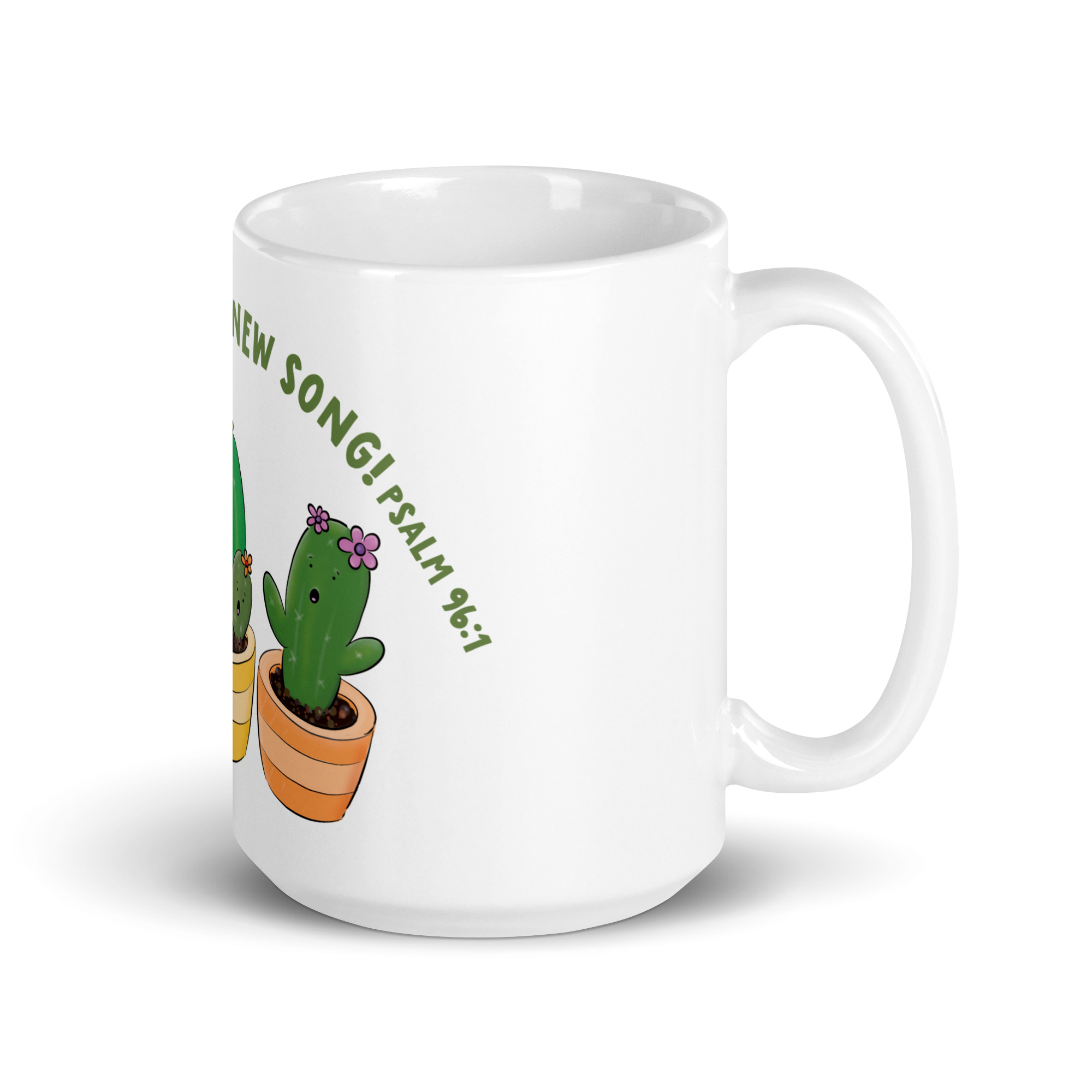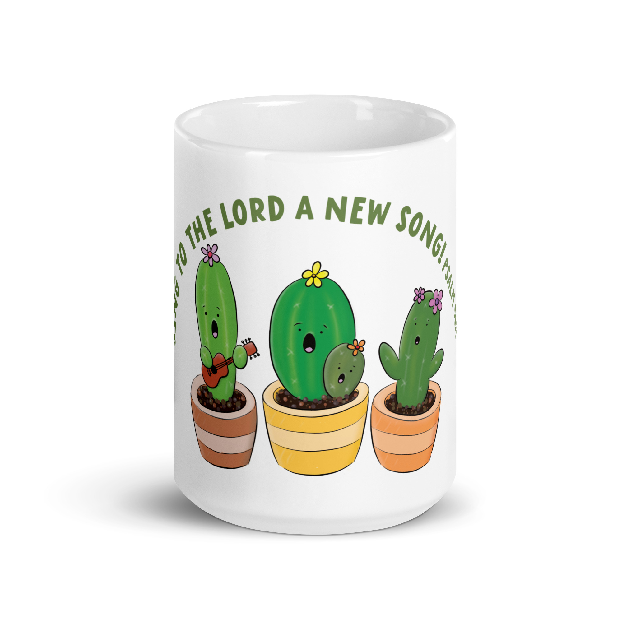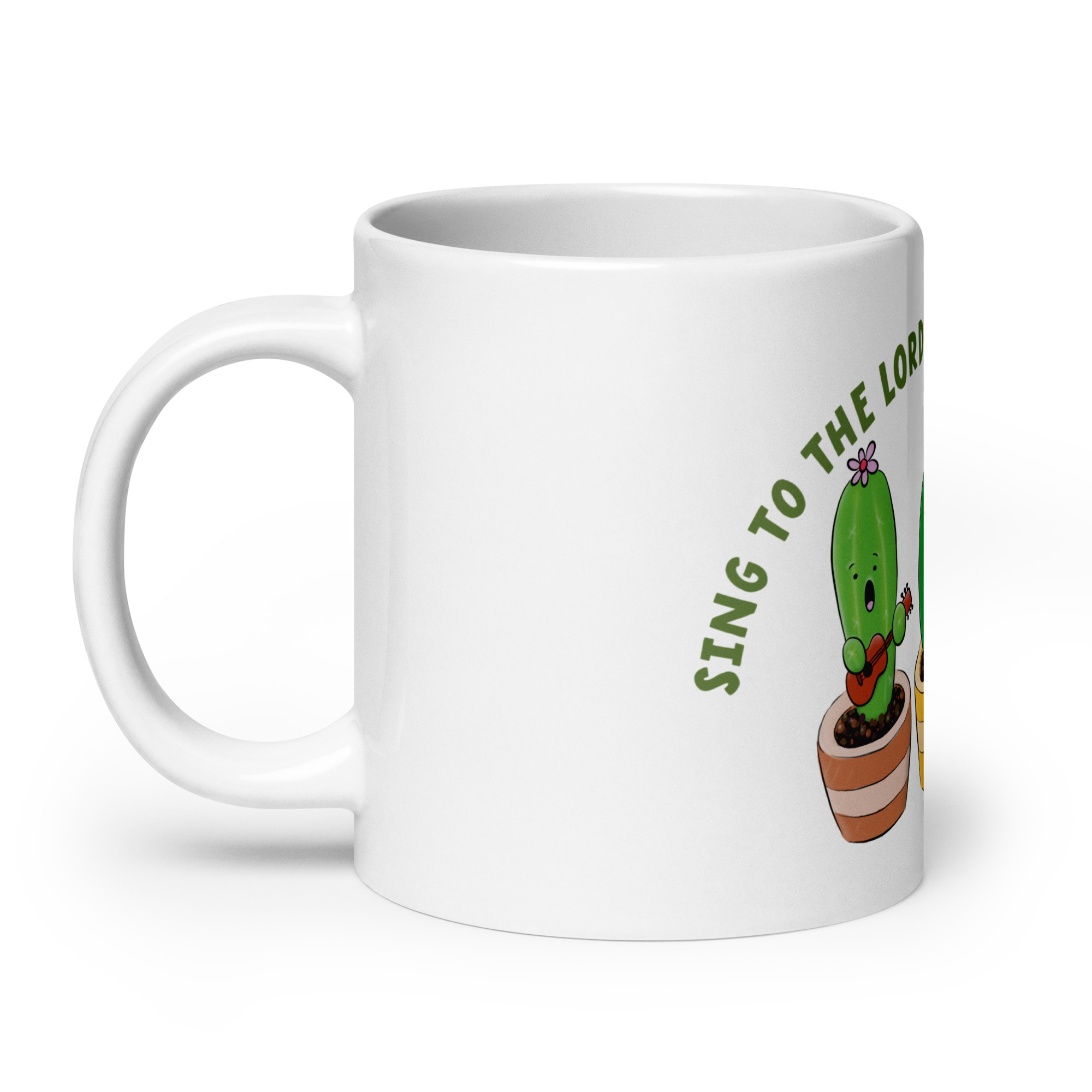 Cute singing cactus cartoon bible verse White glossy mug