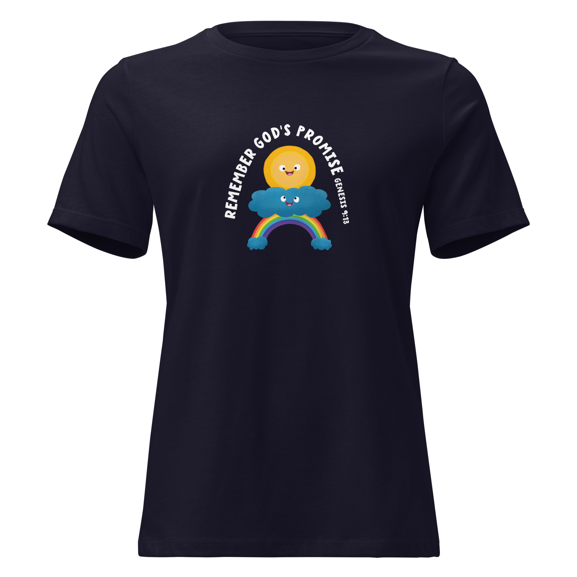 Cute sun and rainbow. God’s promise Genesis bible verse Women’s Relaxed T-Shirt